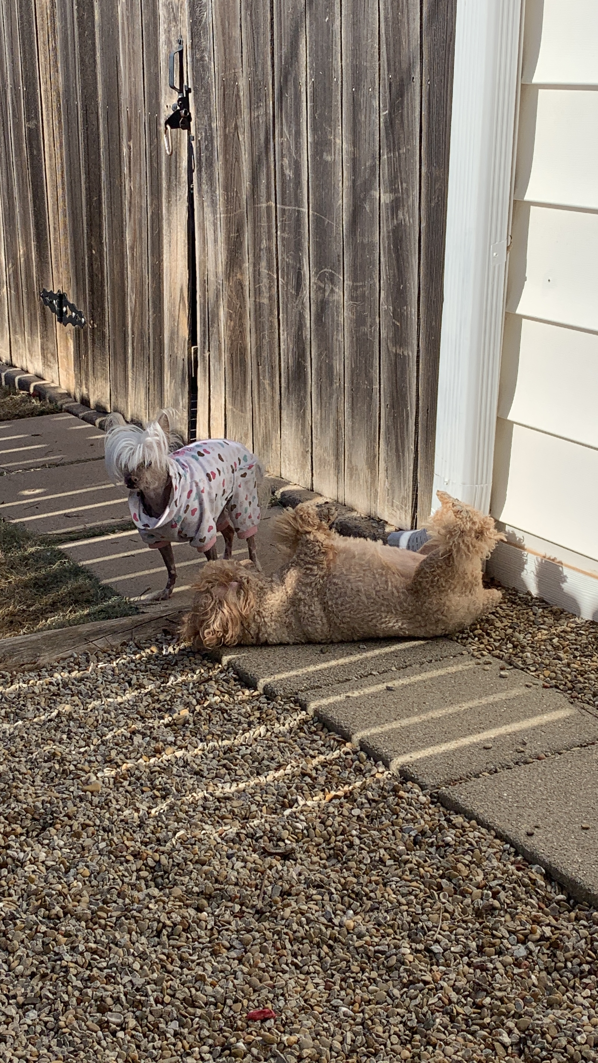 We have a good schedule working with the neighbors we try to not be in the yard at the same time. As our pawrents find our borking annoying and possibly disturbing to the neighbors. But sometimes schedules collide and well borking fits break out.